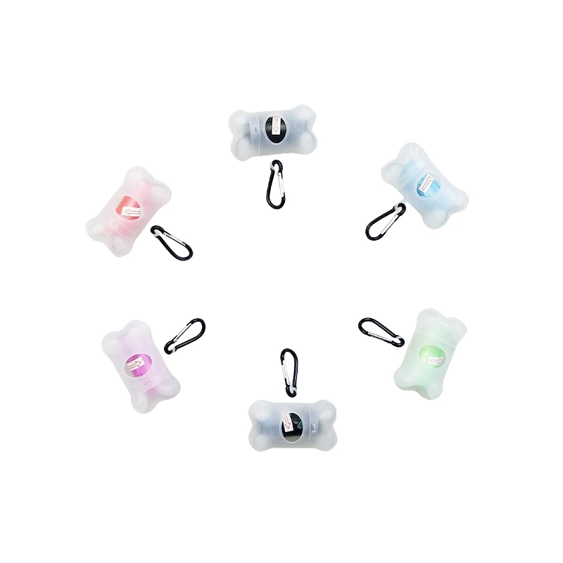 El huesito porta bolsitas transparente es el accesorio ideal para dueños responsables. Con un diseño compacto en forma de hueso, este dispensador te permite llevar siempre tus bolsitas sanitarias de forma práctica y elegante.